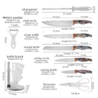 • Hoc cultrum statutum includit 1x 8′ cultrum archimagirus, cultrum 1x 8′ cultrum, 1×8′ cultrum panis, 1x 5′ cultrum utilitatem, 1x 3.5′ cultrum parantem, 1x cultrum acrylicum, 1x cultellos acrylicos, omnes coquendos cultellos in una sarcina indiges.